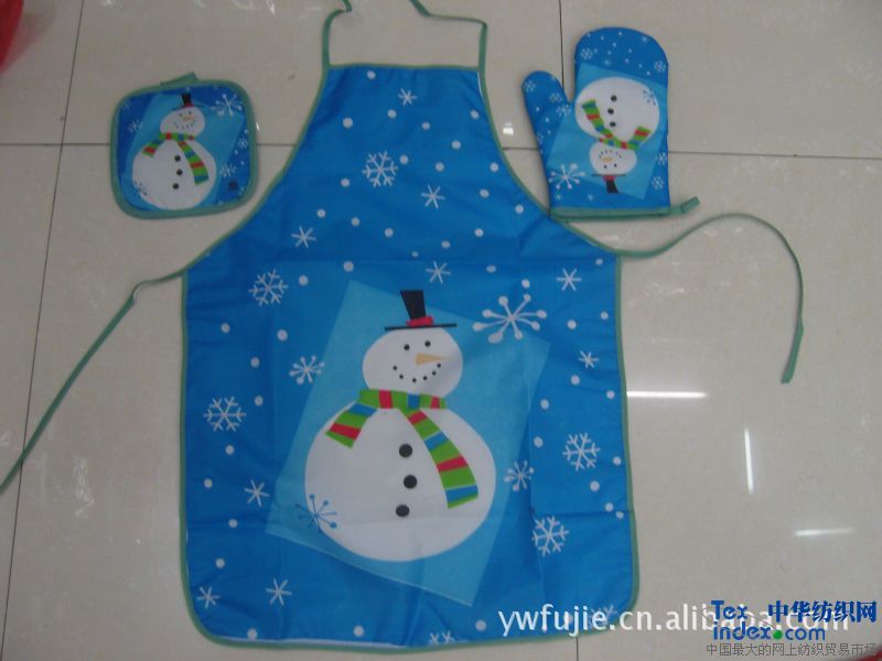 圣誕廚房三件套:圍裙50x70cm +手套16x26cm+隔熱墊17x17cm