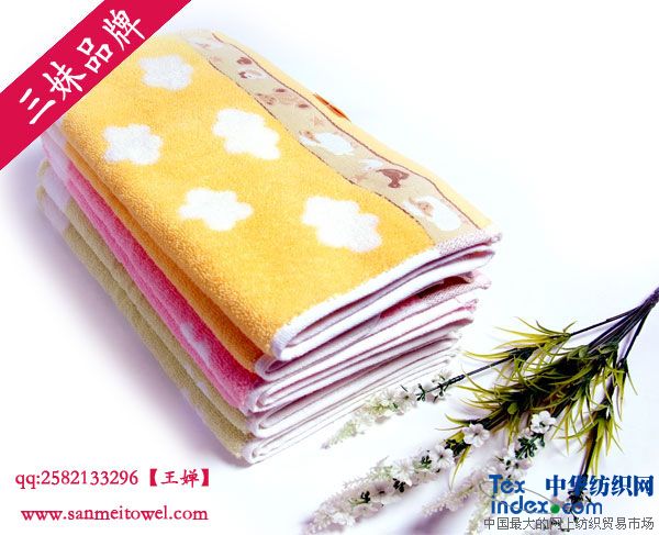 長期供應 純棉無捻提緞卡通毛巾