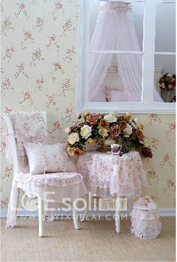 路易雪萊此款產品為淺粉色,面料屬于先進的滌綸、粘纖提花、轉移印花面料,搭配精致的進口蕾絲花邊,既表達溫柔又不失清新。