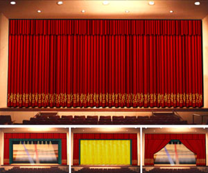 幕布:幕布是觀眾廳與舞臺之間起分割作用的幕,是舞臺的門戶,也是舞臺的主要幕布,主要用于會議或演出開始和結束時的開閉,有時也可用作場幕。位于鏡框舞臺臺口的內側,鏡框舞臺與假臺口之間。大幕有多種閉形式,例如:對開式、升降式、串疊式提式、單側開閉式以及斜拉式等。對其操作控制系統(tǒng)也分為手動和電動兩種形式。本公司大幕設計為均勻伸縮對開式,此方式為時下較流行的一種,其性能穩(wěn)定,使用壽命長,不易損壞。大幕的顏色和面料可直接影響觀眾的視覺,要求莊重而典雅。本方案大幕采用紫紅色麻絨帶本色襯里做面料,通過三折一的藝術制作,給觀眾以強烈的立體感。簡介