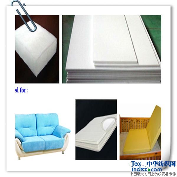 硬質棉又叫:床墊棉,代棕棉,是采用優質進口4080低熔纖維,滌綸中空為原料,經過梳理、鋪網、烘房均勻受熱定型而成。阻燃標準符合美國CA117防火標準,英國BS5852防火標準。