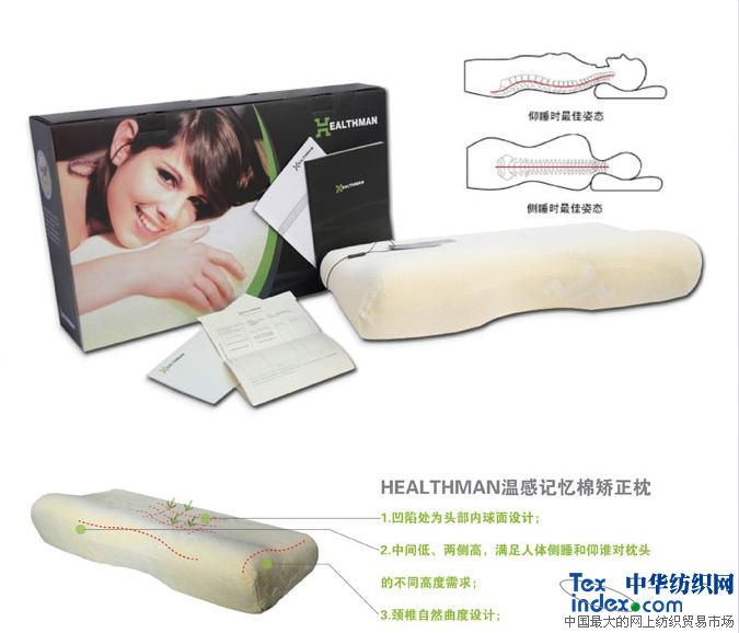 HEALTHMAN枕頭按照人體工學(xué)設(shè)計(jì),完全貼合頭部、頸部及肩部曲線,使頸椎保持自然彎曲狀態(tài),減少落枕可能并防治打鼾。同時(shí)配合HEALTHMAN材質(zhì)的溫感減壓性能,HEALTHMAN枕頭能夠有效吸收人體壓力,將頸部與枕頭之間的壓力化解為零,減少酸痛點(diǎn)的產(chǎn)生,促進(jìn)血液循環(huán),使大腦保持有氧狀態(tài),有助于緩解疼痛和提高睡眠質(zhì)量。另外,HEALTHMAN材質(zhì)的細(xì)胞結(jié)構(gòu)是開(kāi)放式的,由于每個(gè)細(xì)胞單位間是相互連通的,它能夠讓空氣在整個(gè)枕頭間流通,因此透氣性能非常好,比起普通枕頭來(lái),它會(huì)讓您感到更加清爽舒適。而且這種材質(zhì)能抑制霉菌生長(zhǎng),驅(qū)除霉菌繁殖生長(zhǎng)產(chǎn)生的刺激氣味。