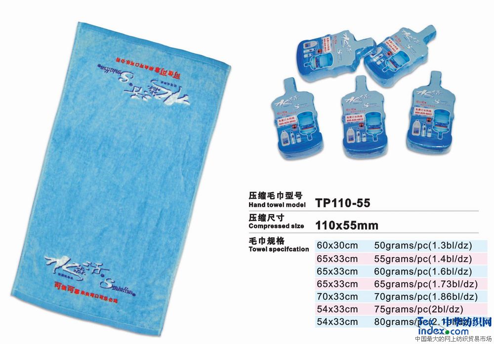 高級環(huán)保壓縮毛巾是二十一世紀的高科技成果、采用100%純棉經(jīng)高溫壓處理而成的新一代產(chǎn)品。放入水中浸片刻即可張開使用。本產(chǎn)品新奇獨特,干凈衛(wèi)生,產(chǎn)品企業(yè)形象宣傳極具效力。廣泛用于廣告宣傳界、酒店、旅游公司等。